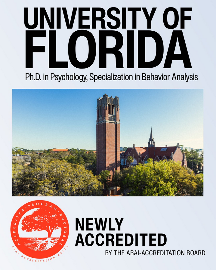 The University of Florida’s Bachelor’s, Master’s, and Doctoral programs in Behavior Analysis have recently received full accreditation from the Association for Behavior Analysis International (ABAI) for a seven-year term, reflecting the exceptional quality and rigor of these programs. Established in 1970, UF’s Behavior Analysis programs have a long-standing history of training scholars and practitioners who go on to make significant and lasting contributions to the field, continuing a tradition of excellence in research, education, and service.
